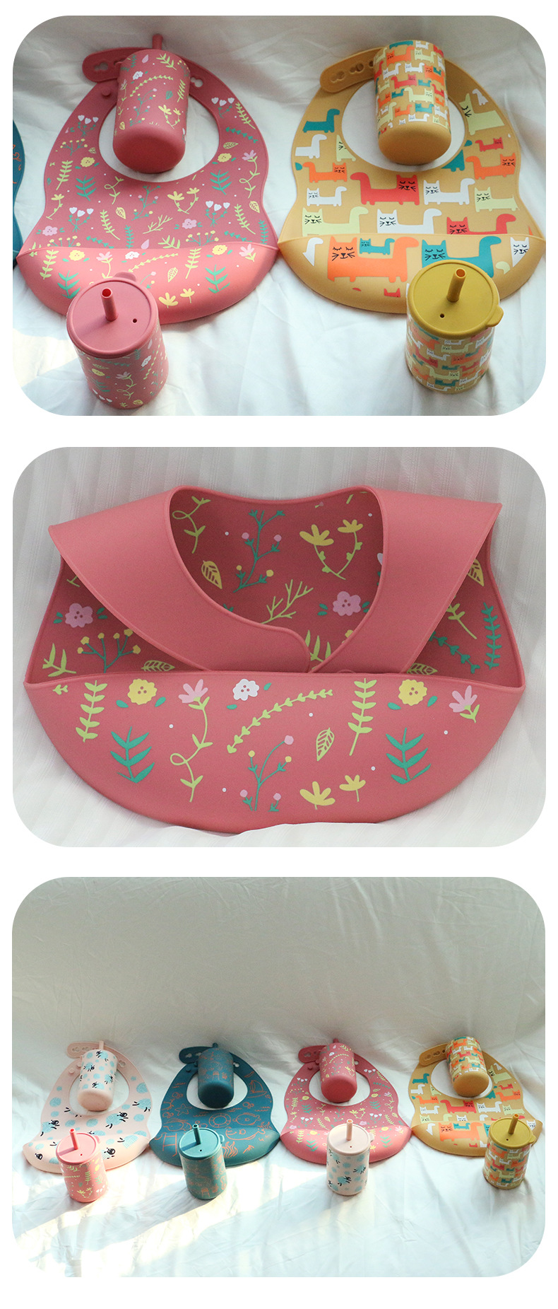 Customized popular forwarding printed silicone bibs, baby waterproof bibs, silicone bibs, bibs, food-grade silicone drool bibs