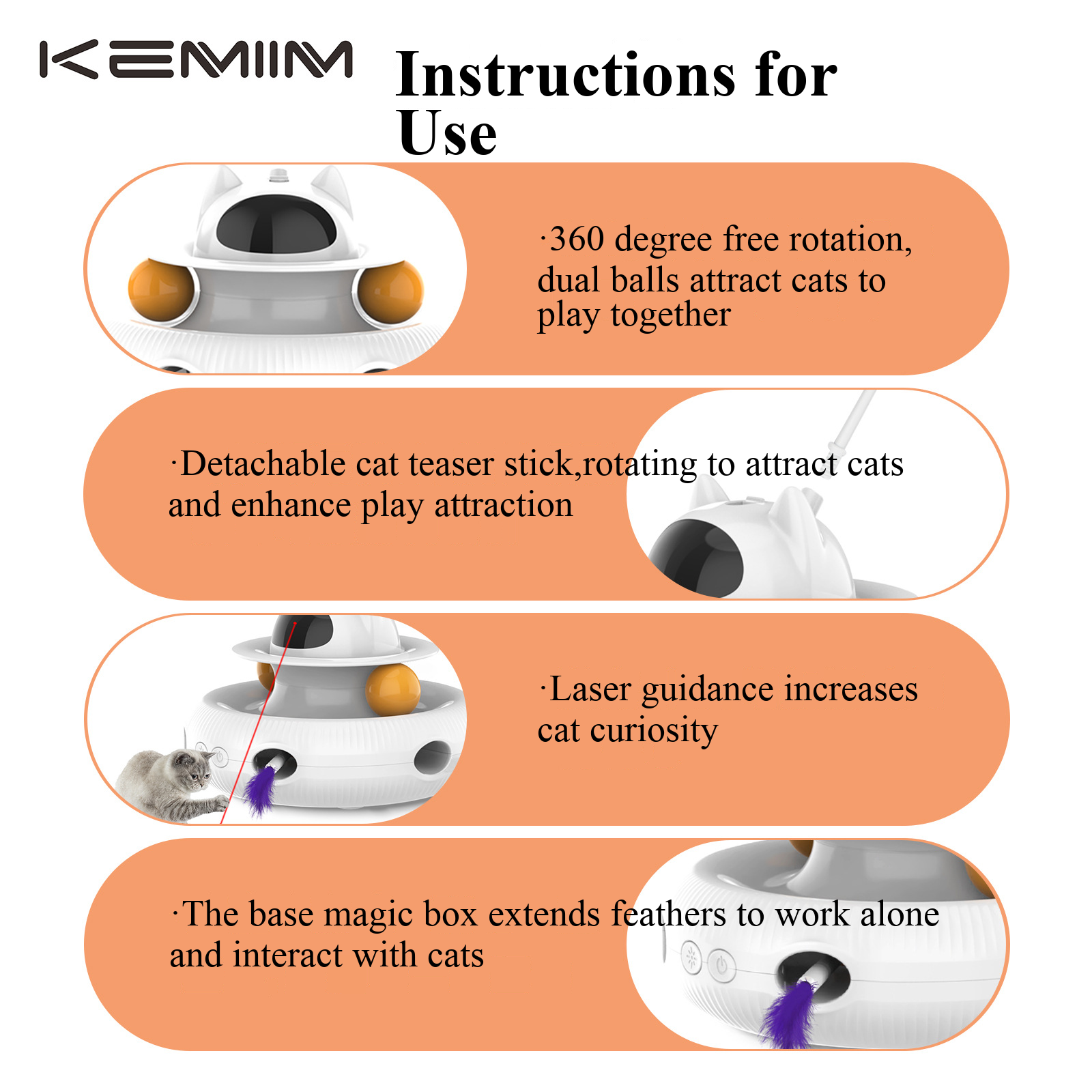 Enhance the interaction between the owner and the cat. 11. To keep the cat feeling fresh with this product over a long period, it is recommended that you do not leave the product turned on all day in the area where the cat spends most of its time. It is suggested that you allow the cat to play with it 3-5 times a day for better results.