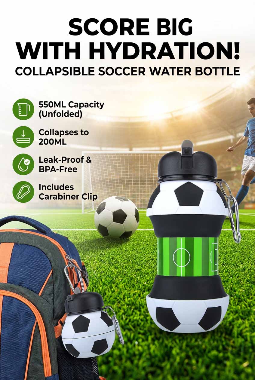 | Baseball Folding Bottle | H10-178 | Red with baseball stitching and player silhouettes | Collapsible body, includes carabiner |
