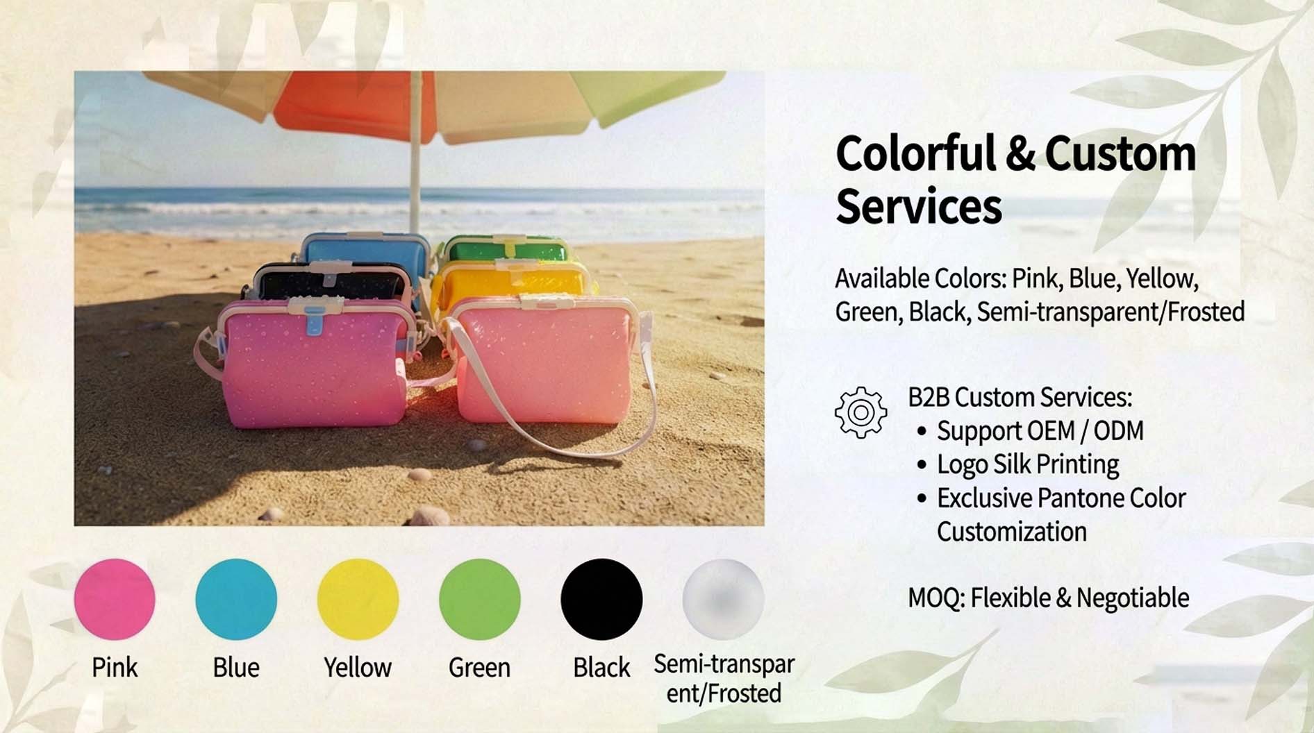 Design: Supports custom logo and color schemes for wholesale orders.