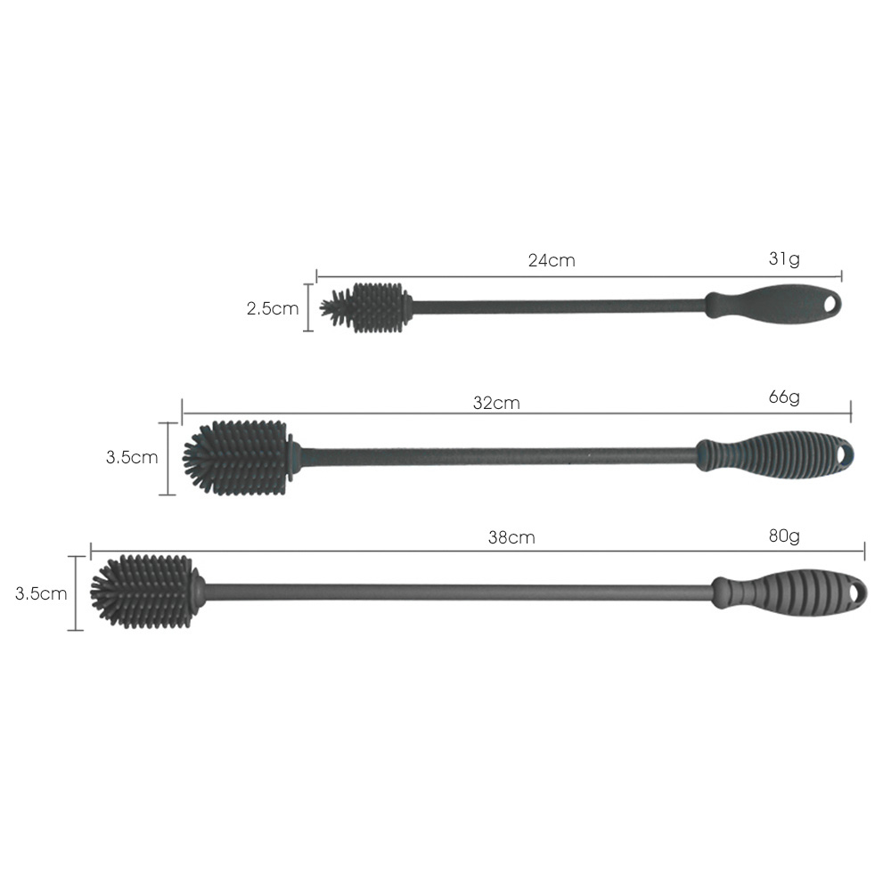 Various Lengths to Meet Different Needs: We have thoughtfully prepared three length specifications: 38cm, 32cm, and 24cm. The extra – long 38cm one can easily reach the bottom for cleaning even a narrow – mouthed vase with an astonishing depth; the standard 32cm one is suitable for most common thermos cups and sports water bottles; the compact 24cm one is easy to carry and is just right for cleaning baby bottles, meeting your cleaning needs in different scenarios.